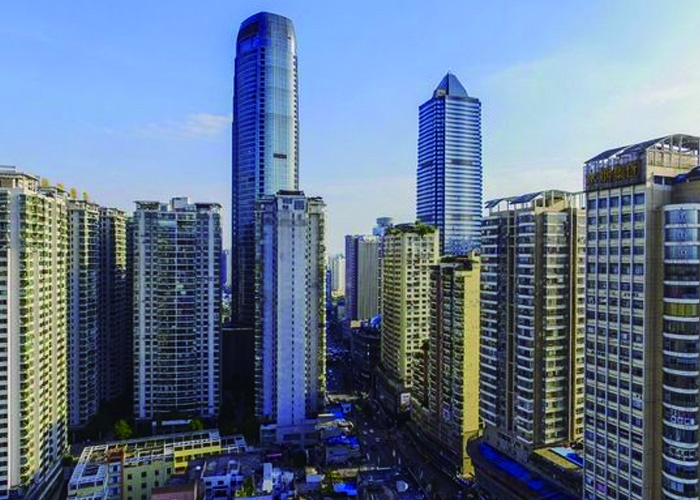 貴陽(yáng)市凱賓斯基大酒店位于貴陽(yáng)市護(hù)國(guó)路與指月街交接處,建設(shè)用地5740平方米,由塔樓、裙樓、地下室組成。其中塔樓為53層超高層建筑,總建筑面積約7.8萬(wàn)平方米,設(shè)三層地下室,地下室埋深12.6M,塔樓與裙樓在地下室部分連接,本工程設(shè)有六層裙房、三層地下室,使用功能為設(shè)備用房、車庫(kù)、辦公、商場(chǎng)、餐飲娛樂(lè);7層~26層為寫字間,28層~53層為酒店;14層、27層、40層為避難層;層面標(biāo)高自地面以上為212.0M,根據(jù)貴陽(yáng)地震設(shè)防烈度低、基礎(chǔ)持力層承載力大的特點(diǎn),采用鋼筋混凝土框筒結(jié)構(gòu),其中框架柱通過(guò)設(shè)置芯柱有效減小柱截面。