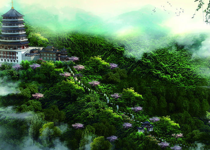 萬(wàn)佛塔坐落在貴陽(yáng)市東山山頂,建筑物跨越山體東西兩側(cè),東西兩側(cè)陡峭,山頂可支承面較小,兩側(cè)為吊腳樓結(jié)構(gòu),從山頂起算掉層總高為26.7m,平臺(tái)以上為鋼框架,高度為45.47m;考慮本工程的特殊性及施工的復(fù)雜性,設(shè)計(jì)進(jìn)行較多補(bǔ)充計(jì)算,采用多種方式進(jìn)行構(gòu)造加強(qiáng)。結(jié)構(gòu)依靠坡體支承和傳力。使結(jié)構(gòu)自身抗傾覆、抗倒塌能力及巖體的穩(wěn)定性得以提升;坡頂?shù)牡卣鸺铀俣确逯递^坡底放大較多,且考慮現(xiàn)場(chǎng)施工復(fù)雜性,上部結(jié)構(gòu)采用鋼結(jié)構(gòu)。
