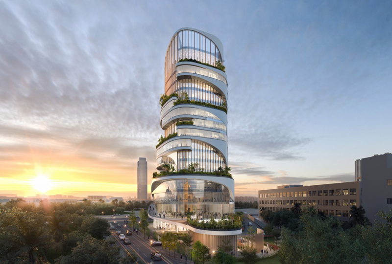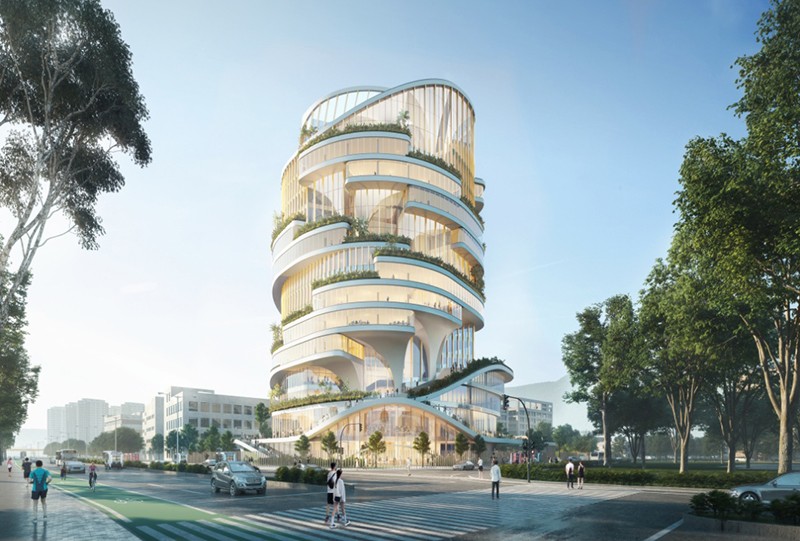 項(xiàng)目集辦公、公共商業(yè)復(fù)合空間、員工配套服務(wù)中心等多種功能于一體,在設(shè)計(jì)理念上,大廈巧妙融入了福州特色地域文化,以“神奇榕樹(shù)屋”為設(shè)計(jì)藍(lán)本,將福州市樹(shù)“榕樹(shù)”的骨骼脈絡(luò)作為核心筒的設(shè)計(jì)靈感,呼應(yīng)了榕樹(shù)粗大的樹(shù)干。建筑平面則類似榕樹(shù)的分支,眾多戶外露臺(tái)形似榕樹(shù)的巨大樹(shù)冠,營(yíng)造出一種通透、靈動(dòng)的視覺(jué)感受。