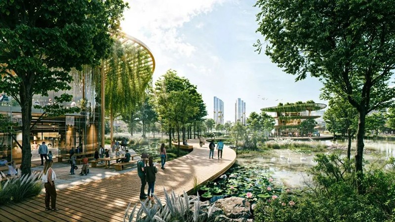 該方案以“以人為本、生態(tài)優(yōu)先”為核心理念,致力于打造一個可持續(xù)發(fā)展的新一代城市中心,推動區(qū)域經(jīng)濟繁榮。設(shè)計團隊通過創(chuàng)新方法與基于自然的解決方案,有效應(yīng)對了洪水、交通流動性及宜居性等關(guān)鍵挑戰(zhàn)。方案構(gòu)建了一個四通八達的城市公園網(wǎng)絡(luò),不僅提升了區(qū)域生態(tài)環(huán)境,還為居民創(chuàng)造了全新的城市生活體驗。