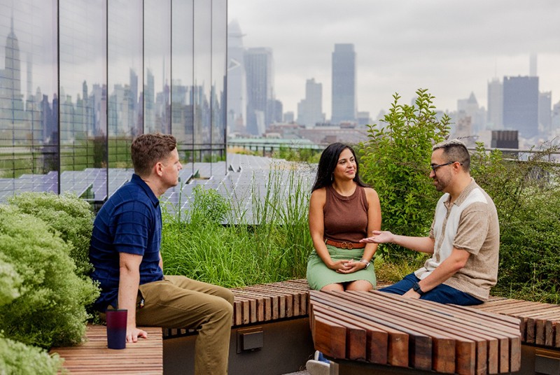 谷歌辦公樓將生態(tài)景觀與智能科技深度融合,打造復(fù)合型功能露臺:通過模塊化綠植墻形成天然氧吧,配合符合人體工學(xué)數(shù)據(jù)的戶外協(xié)作家具,構(gòu)建出支持非正式會議、靈感激發(fā)與壓力緩解的彈性空間。