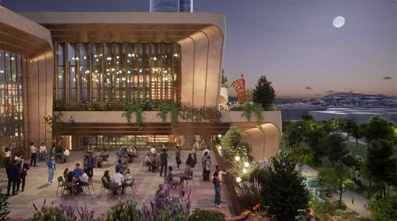 立面設計突破傳統(tǒng),以多樣化的“展窗”形式,展現(xiàn)首爾的創(chuàng)新精神與多元文化,擺脫原有封閉感,吸引人們自發(fā)走近,形成日常與正式活動之外的集聚空間。建筑設計強調(diào)與城市環(huán)境的融合,底層與周邊公園無縫連接,營造可供市民和游客自由穿行、休憩的開放街區(qū)。