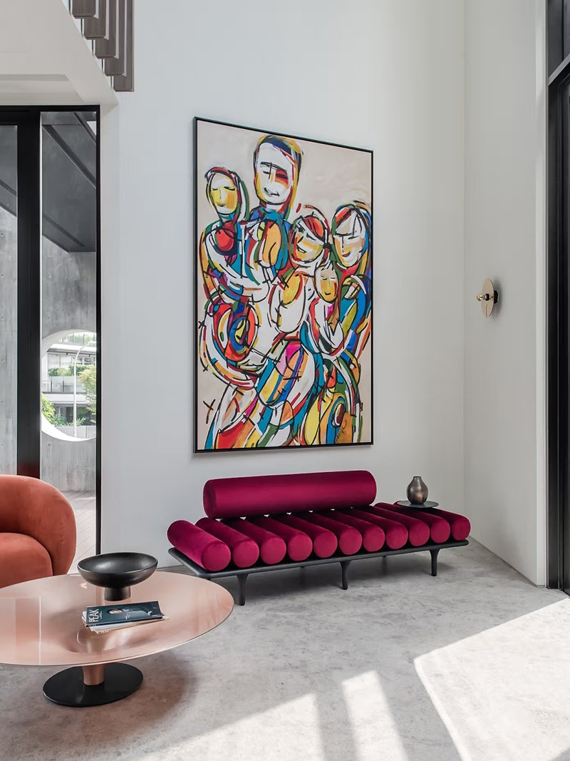 簡潔的家具與藝術元素相得益彰,使每個空間既獨具個性,又與整體氛圍相協(xié)調(diào),為居住者提供私密而愜意的休憩空間。